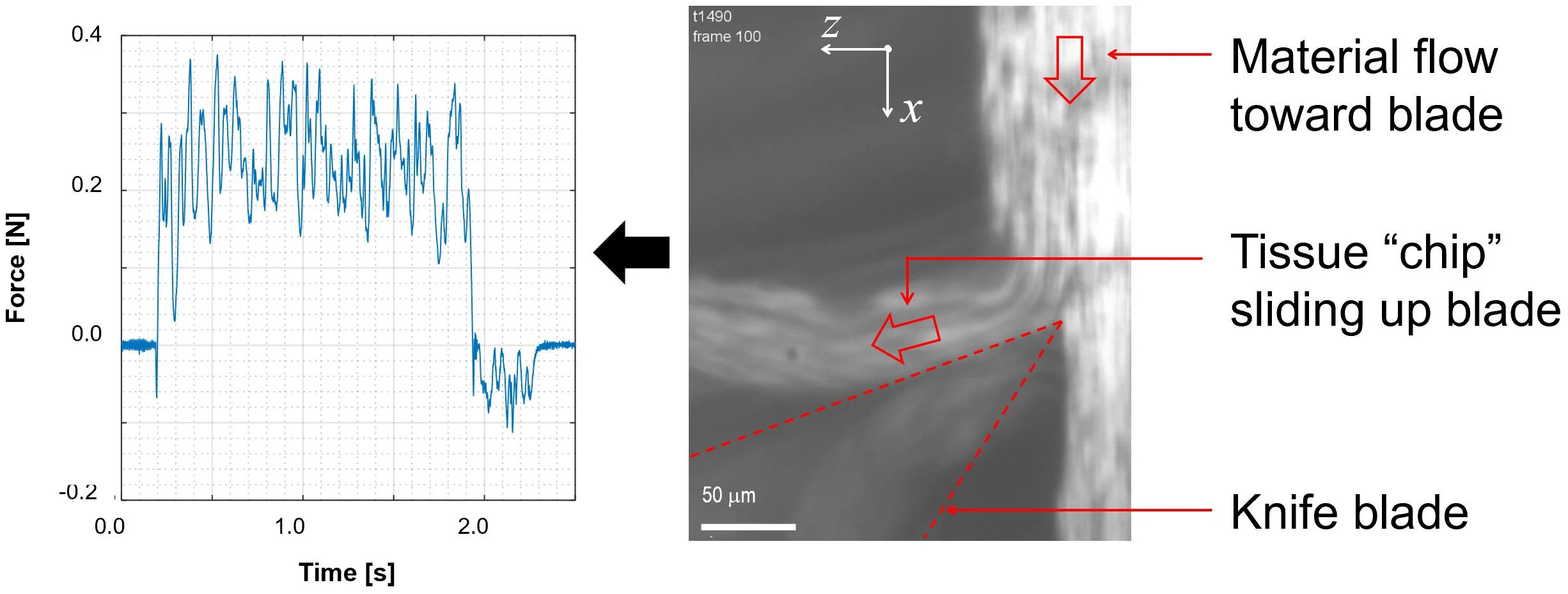 Cutting force measurement and cutting process observation for thick tissue sectioning